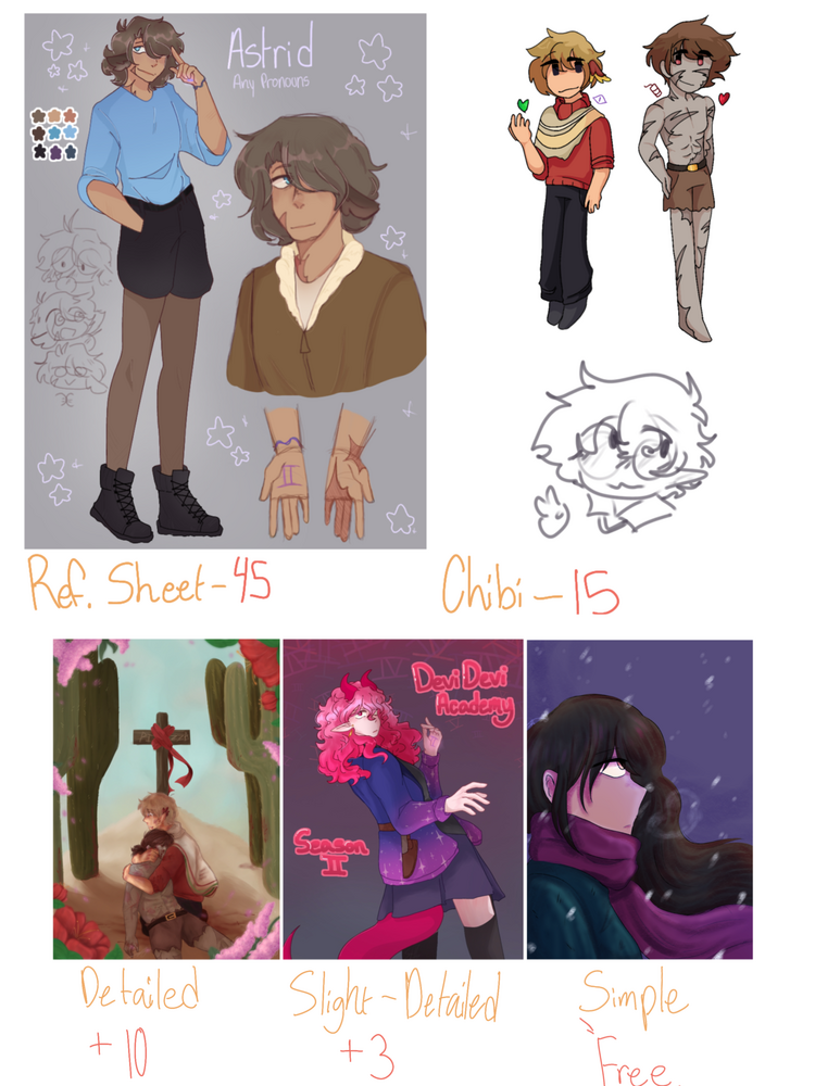 ☆ Reference Sheets will have ( full body, 2 sketch expression, 1 flat bust, and showing of hand or color sheet. )